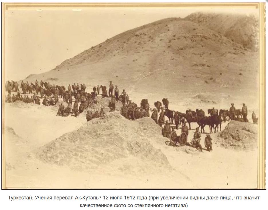 Учения перевал Ак-Кутэль? 12 июля 1912 года (при увеличении видны даже лица, что значит качественное фото со стеклянного негатива) |
