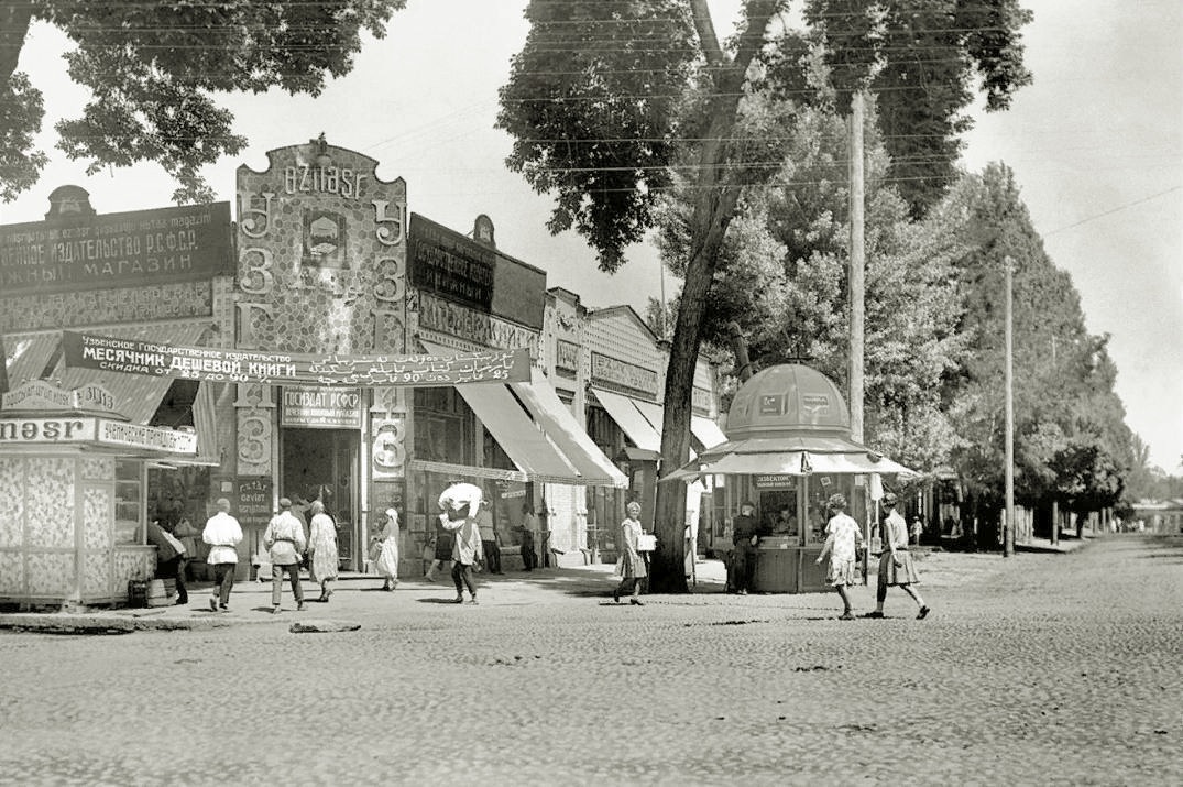 ГЛАВА 2. ТАШКЕНТКупив билеты на поезд, с центрального входа здания вокзала путешественники вышли на огромную площадь, на которой стояли в ожидании пассажиров одноконные экипажи.Через площадь за трамвайной линией была круглосуточная чайхана, куда и направились, Аюп Юсупович, одетый в буденновскую форму: длинная суконная шинель, подпоясанная кожаным ремнем, на голове «будёновка», которую можно носить в любое время года, и Юнир, одетый в чисто татарскую национальную одежду. |