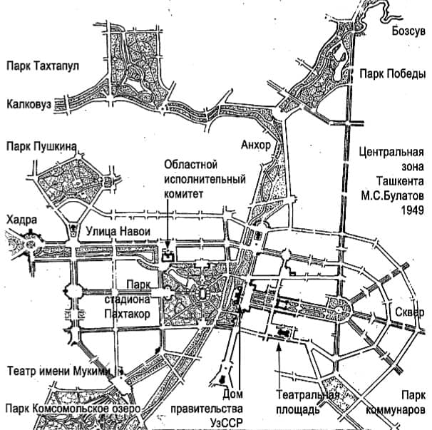 БешАгач 1947..49Мидхат Булатов40..42 года .. главный архитектор.. Комсомольское озеро.. 1949_Tashkent_plan-razvitiia-Bulatov |
