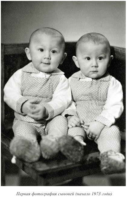 Каким-то образом сообщили Фаату в Москву, что я родила двоих сыновей. Я ждала от него поздравлений, но ничего не получила, нервничала и плакала. Оказывается, поздравительное письмо он отправил почтой, а оно долго шло. Из письма я узнала, что муж особенной радости не испытал, сказав, что мы не договаривались о двоих. А я-то ходила по роддому, задрав нос — двойня была только у меня! |