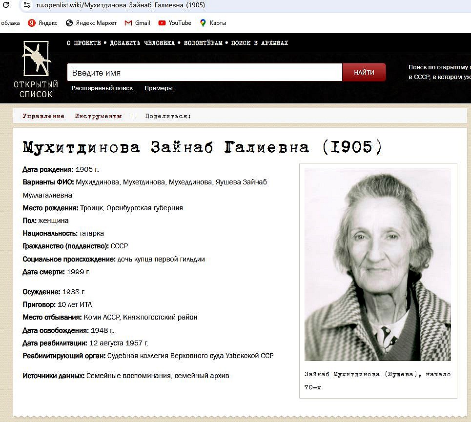 БухараЗайнаб Муллагалиевна Яушева-81Мухитдинова 66..68 лет .. арестована в 1938.. ru.openlist.wiki |